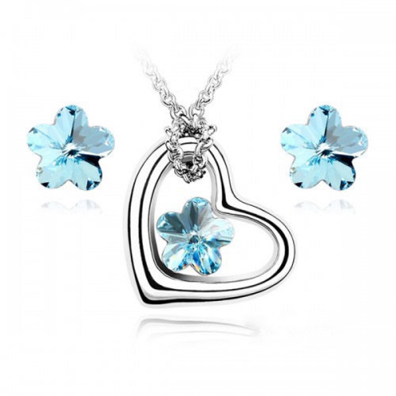 Aquamarine Virágos szett szív medállal Swarovski elemekkel