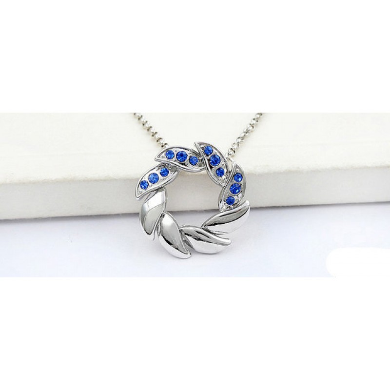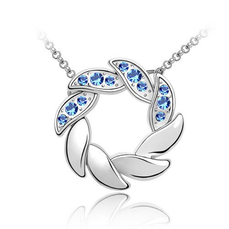 Nyaklánc aquamarine Swarovski kristályos levél formával