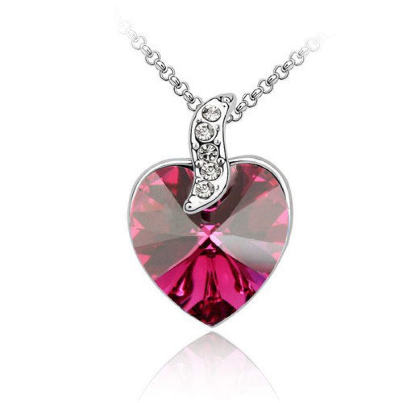 Nyaklánc szív formájú fukszia Swarovski kristállyal